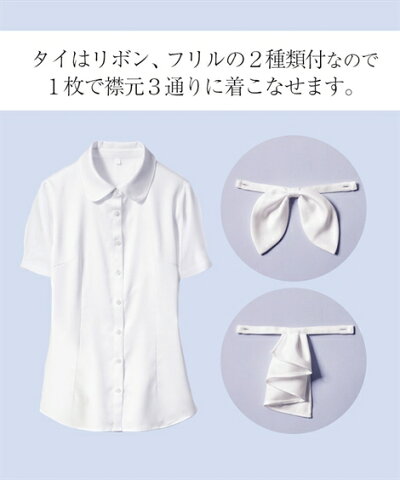 制服スタイルの女子力を後押しする、フリルタイとリボンタイが付いたシャツの半袖タイプです☆