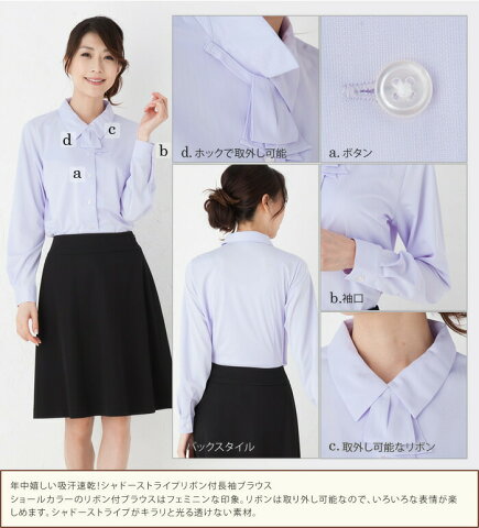 ■■■■■■■■■■■■■■■■■■■■■■■■■■■■■■■■■■ 商品説明 年中嬉しい吸汗速乾!シャドーストライプリボン付長袖ブラウス ショールカラーのリボン付ブラウスはフェミニンな印象。