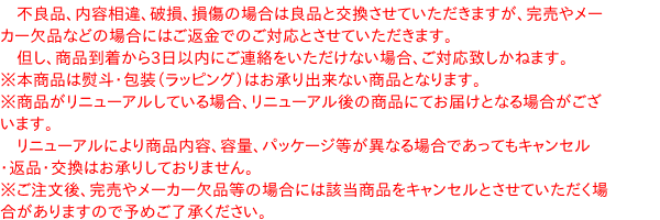 リニューアルにより商品内容、容量、パッケージ等が異なる場合であってもキャンセル・返品・交換はお承りしておりません。