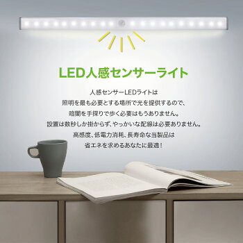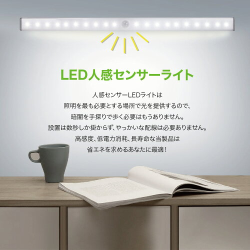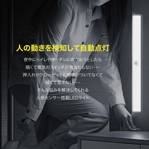 LEDセンサーライト ワイド29.6cm人の動きを検知して自動点灯夜中にトイレやキッチンに向かおうとしたら暗くて電気のスイッチが見当たらない・・・押入れやクローゼットに照明がついてなくて暗くて見えない・・・そんな悩みを解決してくれる。