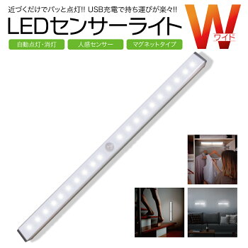 【9/4 20時〜!最大半額セール開催♪ポイント5倍&最大50%offクーポン配布】 LEDライト 感知式 照明 人感 センサーライト ワイド 29.6cm ledセンサーライト 人感センサー ライト 防災グッズ 屋外 室内 小型 玄関 クローゼット 廊下 senser-02