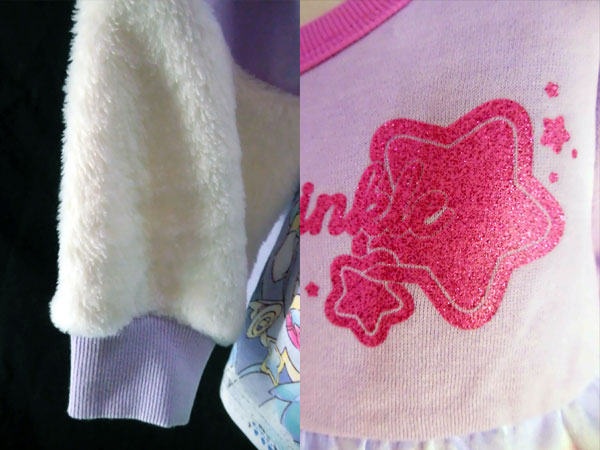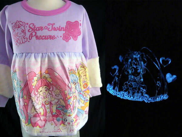 暗い部屋では、キュアスターたちが光る! 明るい部屋では胸の箔プリントがキラキラします こども達にもパパ・ママにも大人気のパジャマです。