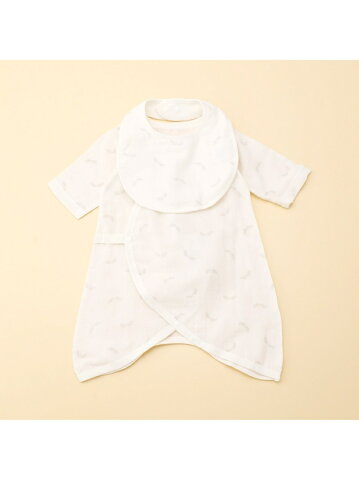 COMME CA ISM(コムサイズム)コンビ肌着・スタイ入り ギフトセット(50-60サイズ)《デザイン》羽の総柄プリントのコンビ肌着とスタイの入った新生児向けギフトセット。