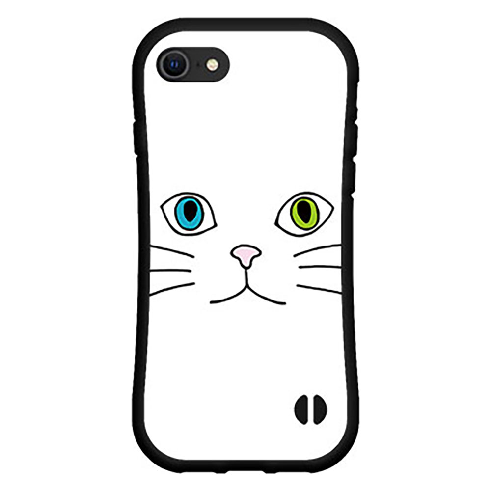 iPhone SE (第2世代) アイフォン エスイー2020 SE2docomo au SoftBank落としても割れにくい驚きの衝撃吸収力豊富なオリジナルデザイン耐衝撃 ハイブリッドケースキャットフェイス(ホワイト)