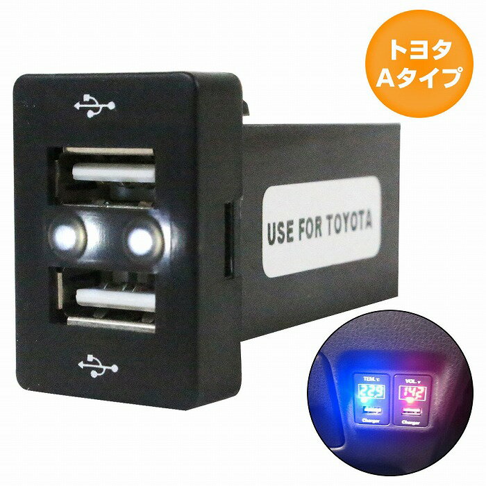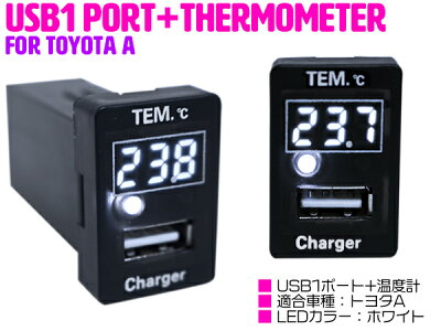 温度計 デジタル 表示 USB充電ポート付 USBスイッチ トヨタA 温度計表示 ノア NOAH ZRR70系/ZRR80系 ノアハイブリッド ハイエース 200系 4型 パッソ GC/NC10系/GC30 プリウス ZVW30系 プリウスPHV ZVW35 プリウスα ZVW40系 【USB増設 ブルー/グリーン/レッド/ホワイト】