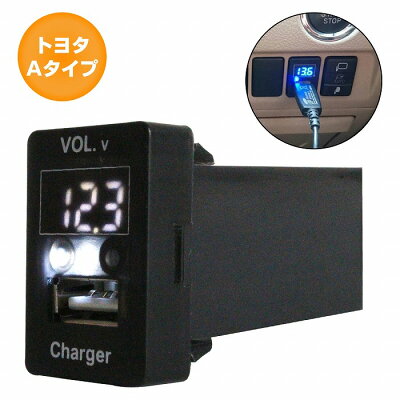 電圧計 デジタル 表示 USB充電ポート付 USBスイッチ トヨタA 電圧計表示 ノア NOAH ZRR70系/ZRR80系 ノアハイブリッド ハイエース 200系 4型 パッソ GC/NC10系/GC30 プリウス ZVW30系 プリウスPHV ZVW35 プリウスα ZVW40系 【USB増設 ブルー/グリーン/レッド/ホワイト】