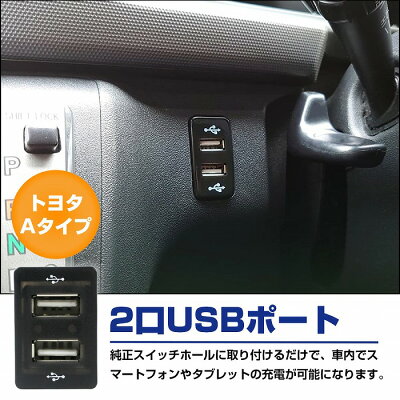 純正の空いているスイッチホールに 取り付け、携帯やダブレット端末を車内で充電できます。