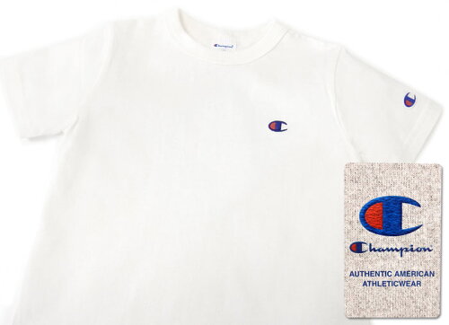【送料無料】男児 キッズ 本体綿100% Champion/チャンピオン 半袖 Tシャツ ロゴ刺繍 クルーネック 子供服 男の子 110cm 120cm 130cm td-0103a-wt【メール便対応】