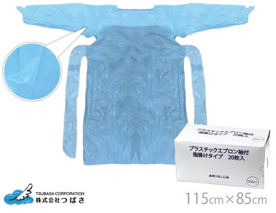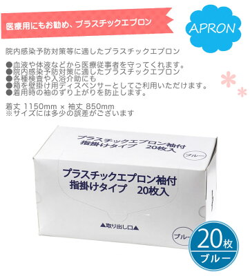防水 エプロン 使い捨て 20枚 長袖 ビニール 感染 プラスチックエプロン ポリエプロン ブルー 感染予防 感染対策 料理 衛生管理 介護用 医療用 RSL