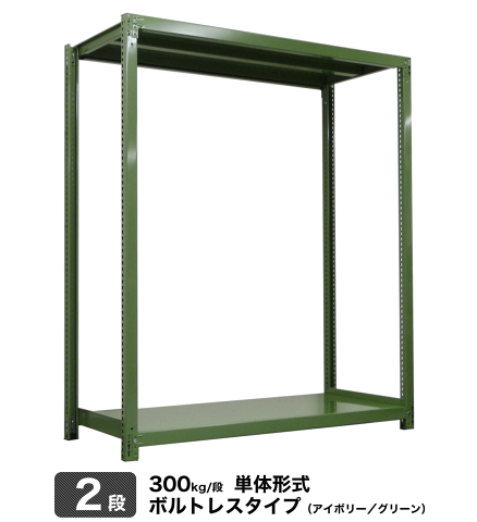 EK中量 300kg/段 高さ2400×幅1800×奥行900mm 2段 連結 (ボルトレス) アイボリー/グリーン (71kg) EK300_R-241809-2