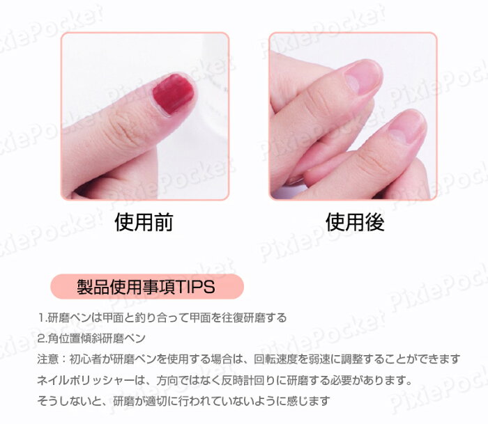 製品パラメータ 商品名:ネイルポリッシャー カラー:ピンク、ホワイト、レッド 製品サイズ: 20x20x155mm 充電方法:USB 充電時間:約30分 使用時間:約90分 関連キーワード(本商品の説明ではありません):ネイルケア ネイルマシン ケアセット 11in1多機能ネイルドリル 高速18000rpm回転 低振動 低騒音 ネイルケアセット 爪切り 爪磨き 角質除去美しい おすすめ 収納 使い方 初心者 美容師 可愛い かわいい おしゃれ お洒落 ギフト プレゼント 女性